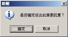 點選下單送出按鈕則將委託單送出,並於送出前出現提醒訊息。