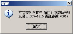 委託單已經送出,該視窗中帶出交易日期與委託書編號
